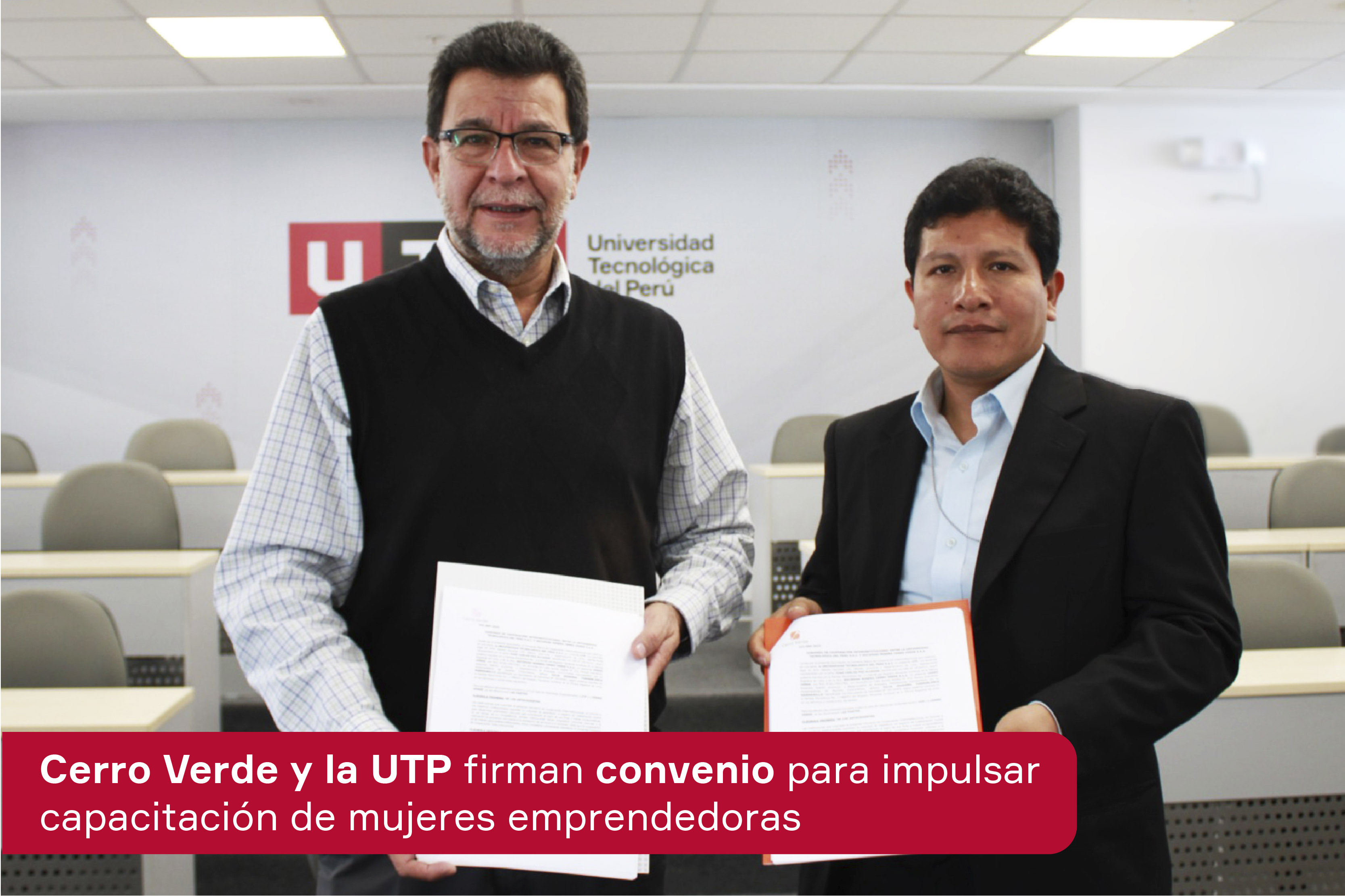 Sociedad Minera Cerro Verde y la Universidad Tecnológica del Perú (UTP) suscribieron un convenio de cooperación institucional que permitirá a las mujeres emprendedoras de Arequipa generarse nuevas oportunidades laborales a través de la capacitación en gestión de negocios, utilizando el exitoso programa global denominado DreamBuilder.