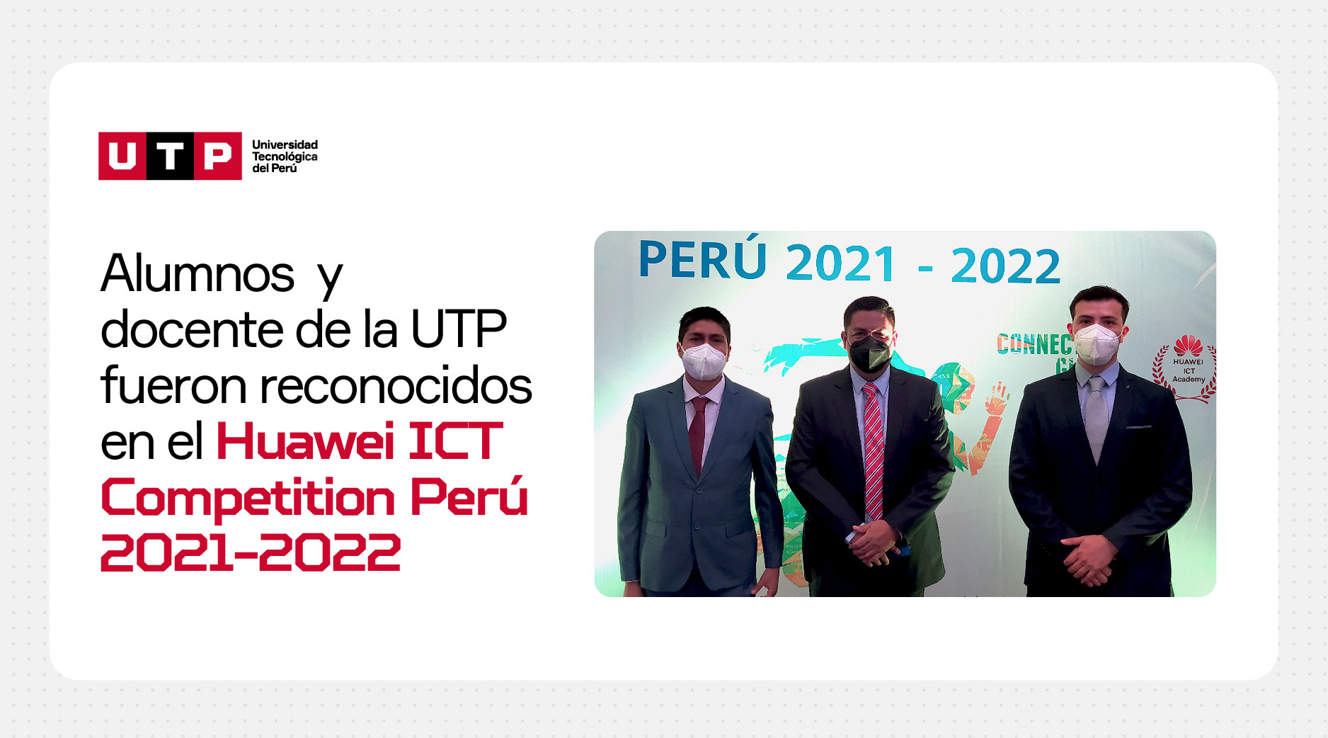 Los estudiantes del Campus UTP Lima Centro, Elías García, de la carrera de Ingeniería de Telecomunicaciones, y Álvaro Estrada, de Ingeniería de Redes y Comunicaciones, lograron el tercer lugar en el Huawei ICT Competition Network Track Perú 2021-2022.En la competencia participaron universidades de todo el país que forman parte del Huawei ICT Academy, como la UTP. El evento tuvo por objetivo promover el desarrollo de jóvenes talentos en las Tecnologías de la Información y Comunicación (TIC), además de apoyar a la industria y a la educación.