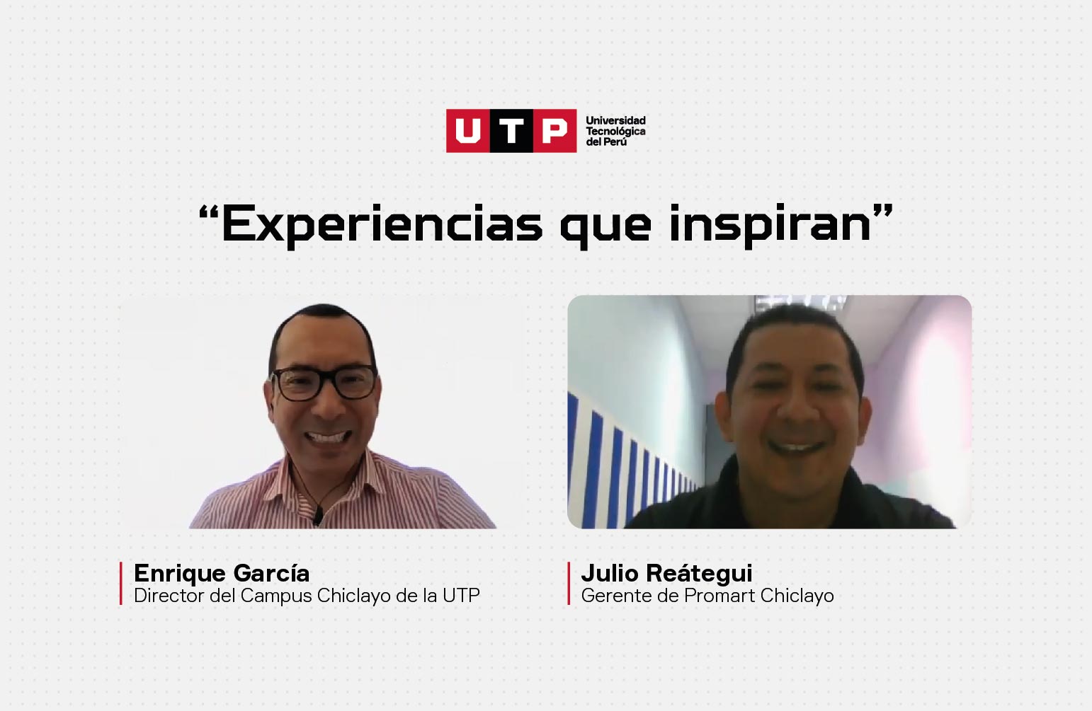 Para conocer cómo mejorar la experiencia del consumidor en el sector retail, Enrique García, director del Campus Chiclayo de la Universidad Tecnológica del Perú, conversó con Julio Reátegui, gerente de Tienda de Promart de esta ciudad. El encuentro se realizó como parte del espacio “Experiencias que inspiran”, organizado por la UTP.