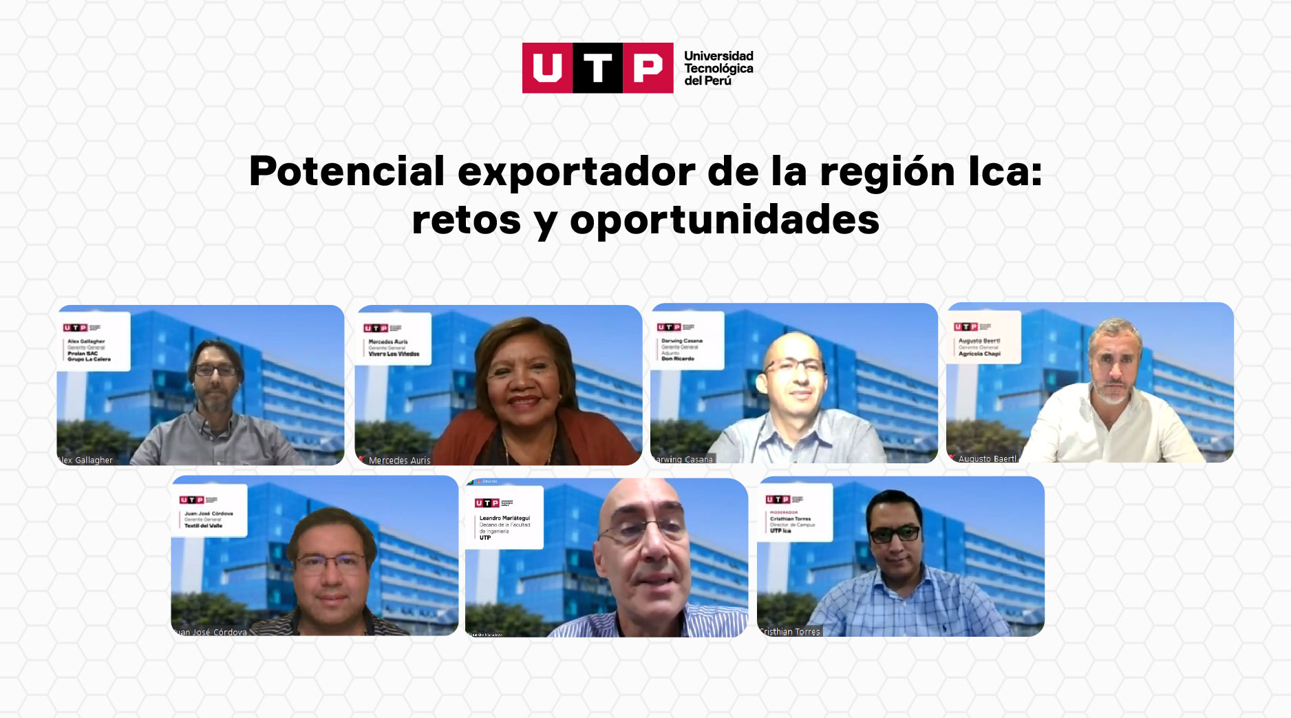 La Universidad Tecnológica del Perú Campus Ica realizó el conversatorio virtual “Potencial exportador de la región Ica: retos y oportunidades”.