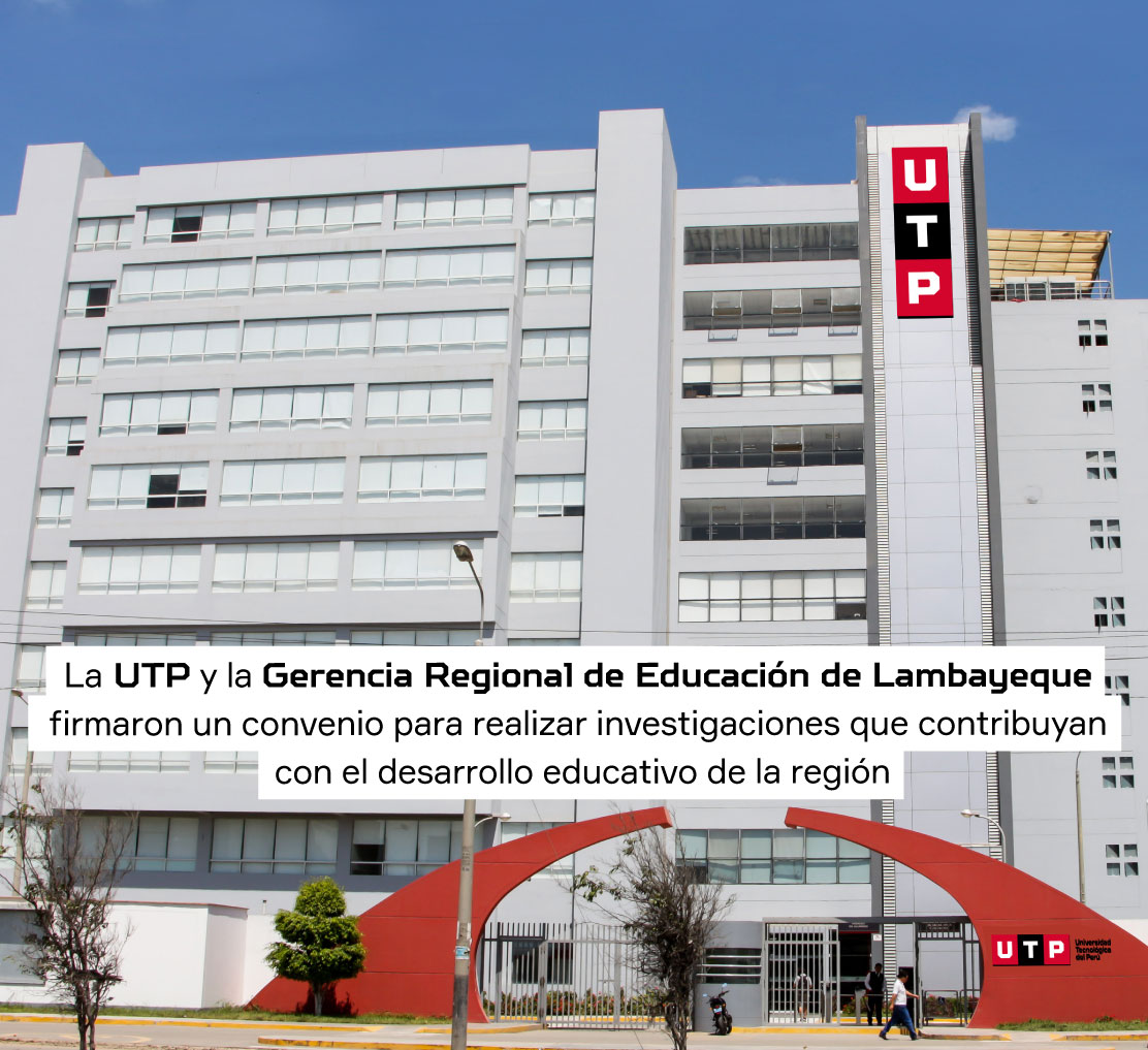 El Campus UTP Chiclayo y la Gerencia Regional de Educación de Lambayeque unen esfuerzos mediante el Convenio Marco de Cooperación Institucional, que tiene como objetivo realizar de manera conjunta una serie de investigaciones para contribuir con el desarrollo educativo en Lambayeque dentro del Plan Nacional Aprendo en Casa.