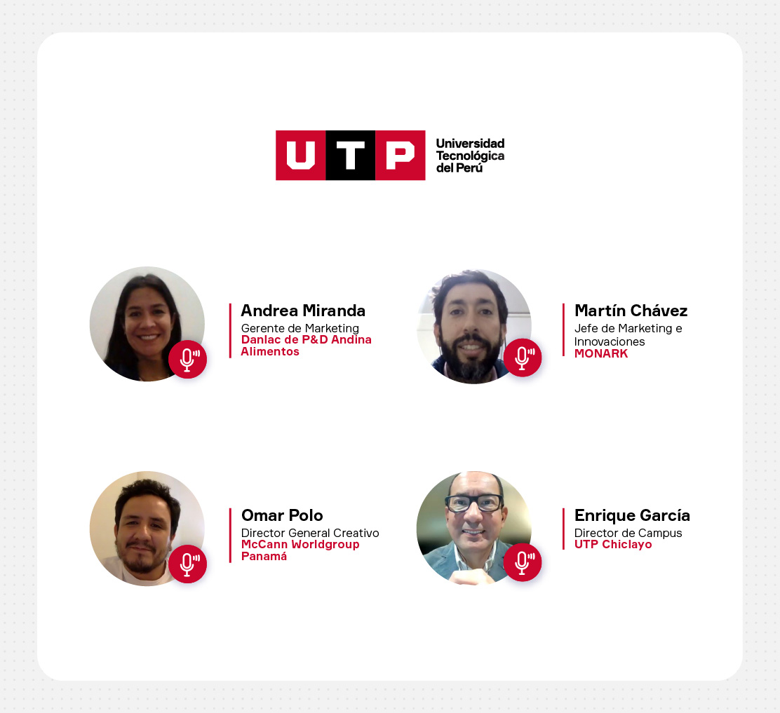 El marketing digital hoy es el gran aliado de las empresas y las organizaciones. Para profundizar sobre las claves para potenciarlo, el Campus Chiclayo de la Universidad Tecnológica del Perú (UTP) realizó el conversatorio virtual “Acciones digitales para mejorar la presencia de marca”, con la participación de tres especialistas del marketing y de la publicidad de Danlac, Monark y McCann Panamá.