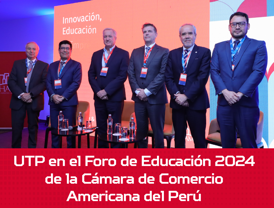 La UTP fue uno de los auspiciadores del Foro Educación 2024. Este espacio fue realizado por AmCham Perú, una organización independiente y sin fines de lucro que cuenta con más de 5,000 representantes de 580 empresas asociadas entre peruanas, estadounidenses y extranjeras no americanas. Además, promueve los principios que alientan la economía, el mercado, la inversión y el intercambio comercial.