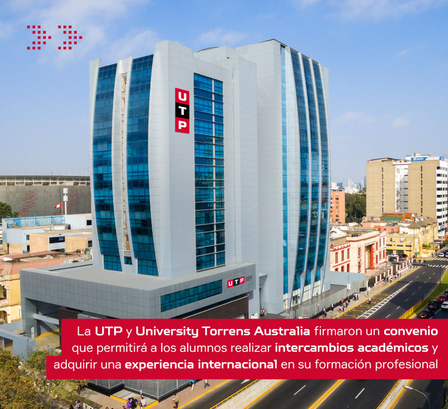 La Universidad Tecnológica del Perú (UTP) y University Torrens Australia firmaron un convenio académico que permitirá que los estudiantes de las carreras de Salud, Negocios y Diseño puedan realizar intercambios académicos y adquirir una experiencia internacional en su formación profesional.