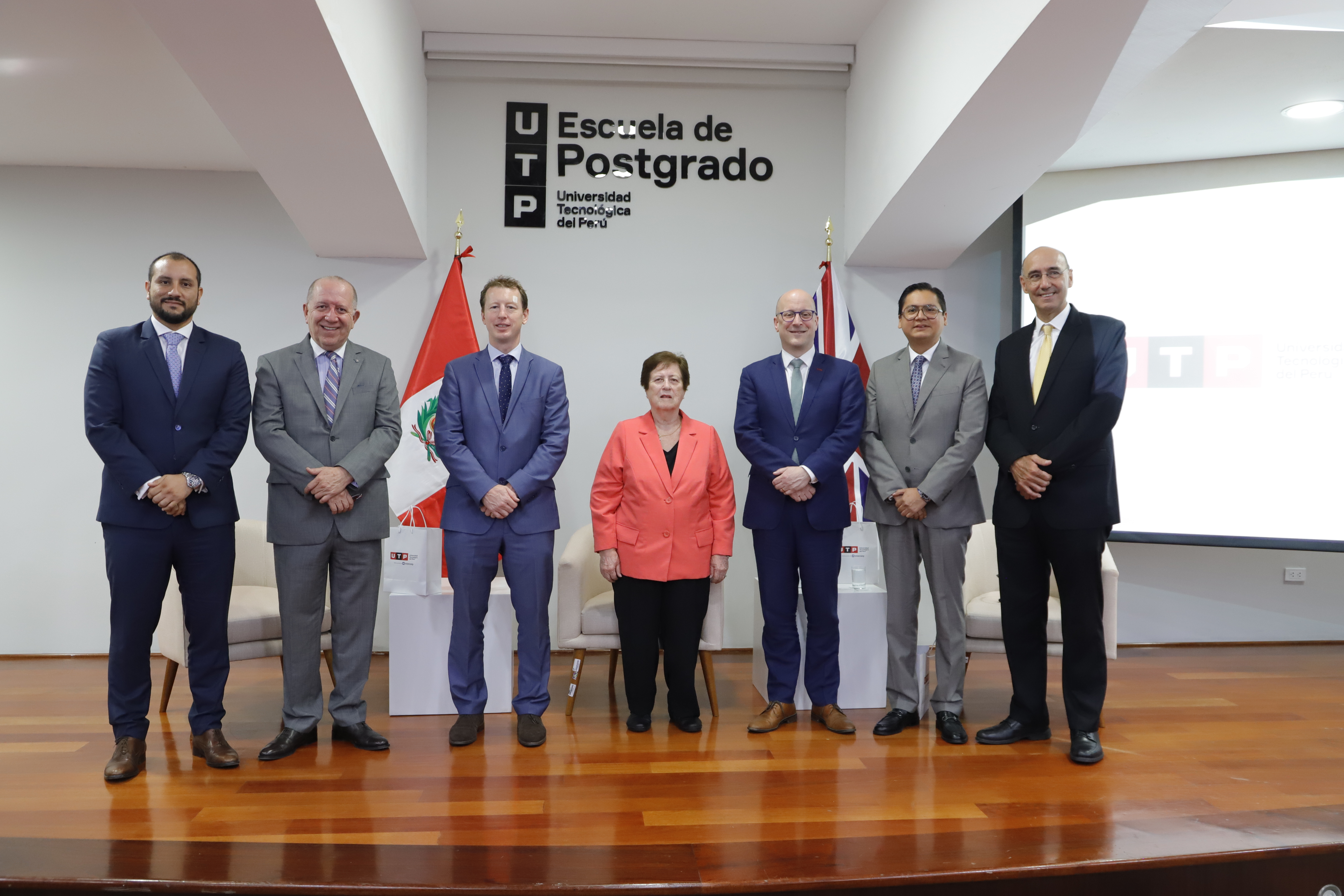 Durante el evento de lanzamiento de esta beca, estuvieron presentes Gavin Cook, embajador británico en Perú; Alexander Evans, Director del Programa de Políticas Públicas de London School of Economics, y, en representación de la UTP, Graciela Risco, Rectora Emérita; Luis Diez Canseco, decano de la Facultad de Derecho y Ciencias Humanas, y Mariella Cantoni, jefa de la Oficina Internacional.
